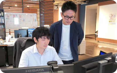 私たちは週次のプロジェクト会議で進捗をしっかり管理しています。 もし想定より工数がかかっている場合でも、 メンバーの再アサインや人員追加、納期調整など、チーム全体で柔軟に対応できる体制があります。実装方法や技術的な相談があるときは、いつでもミーティングを開き、周囲の意見を聞ける風通しのよさ も魅力のひとつ。ひとりで抱え込まず、みんなで解決していける。そんなカルチャーが根づいています。
